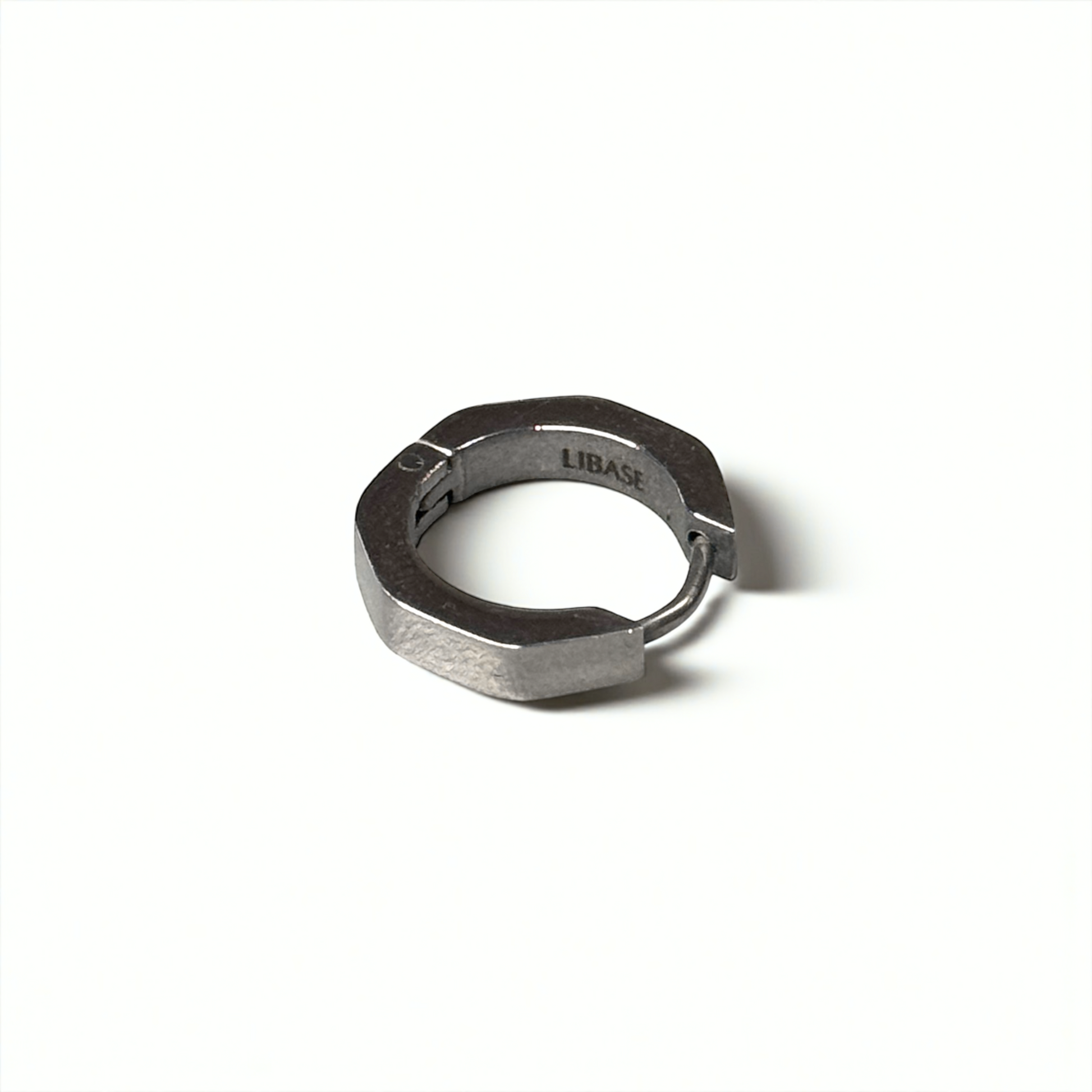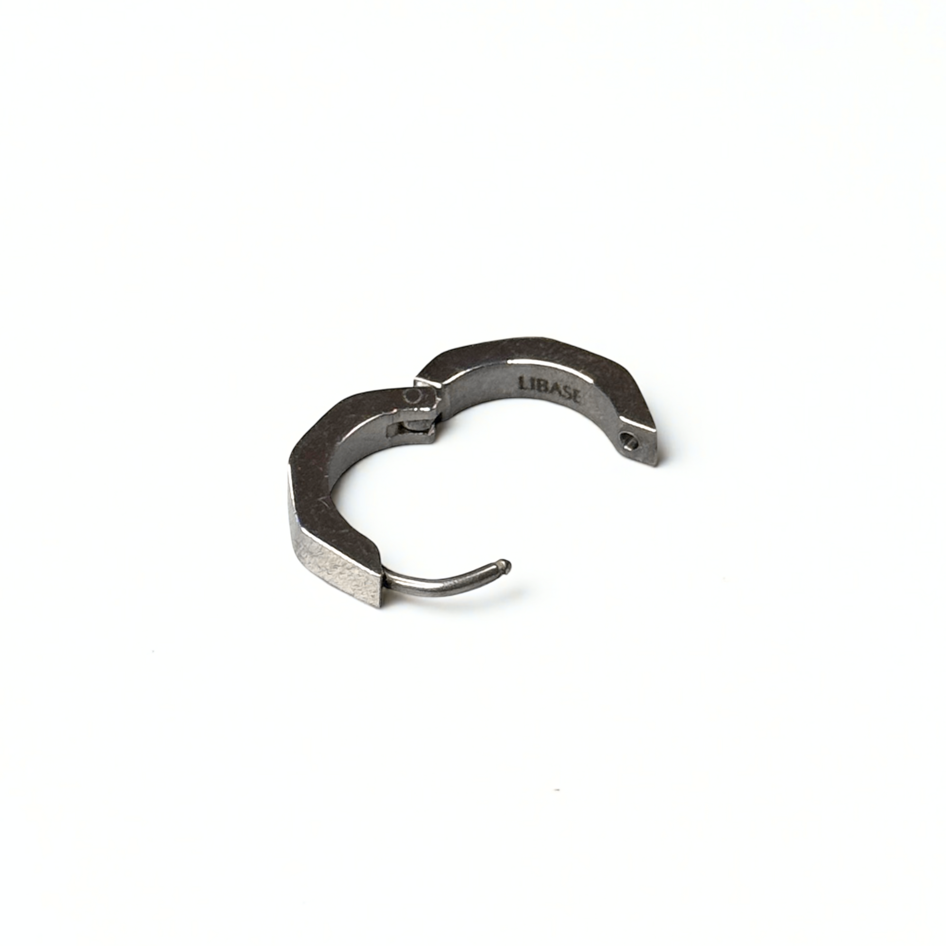 角ばったデザインがかっこいい、シルバーのフープピアス。