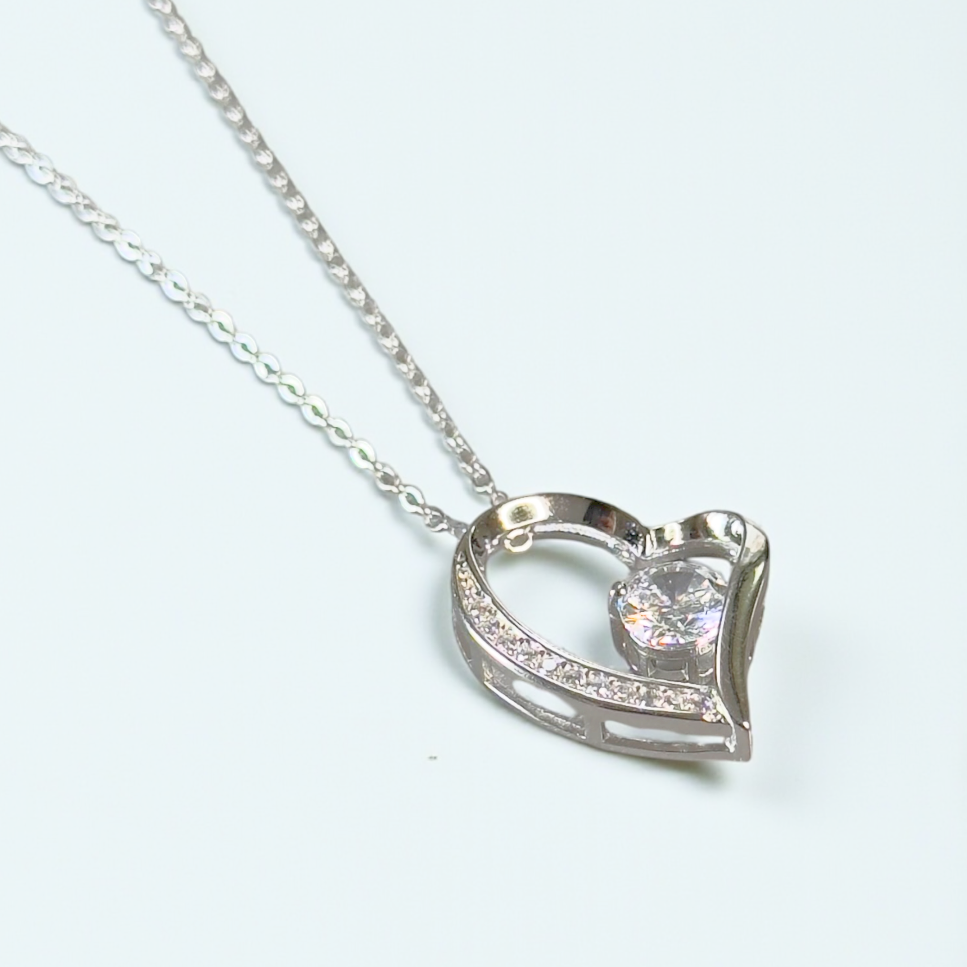 緩やかにカーブしたハートの中で、一粒のジルコニアが光を受けて繊細に揺れ動きます。