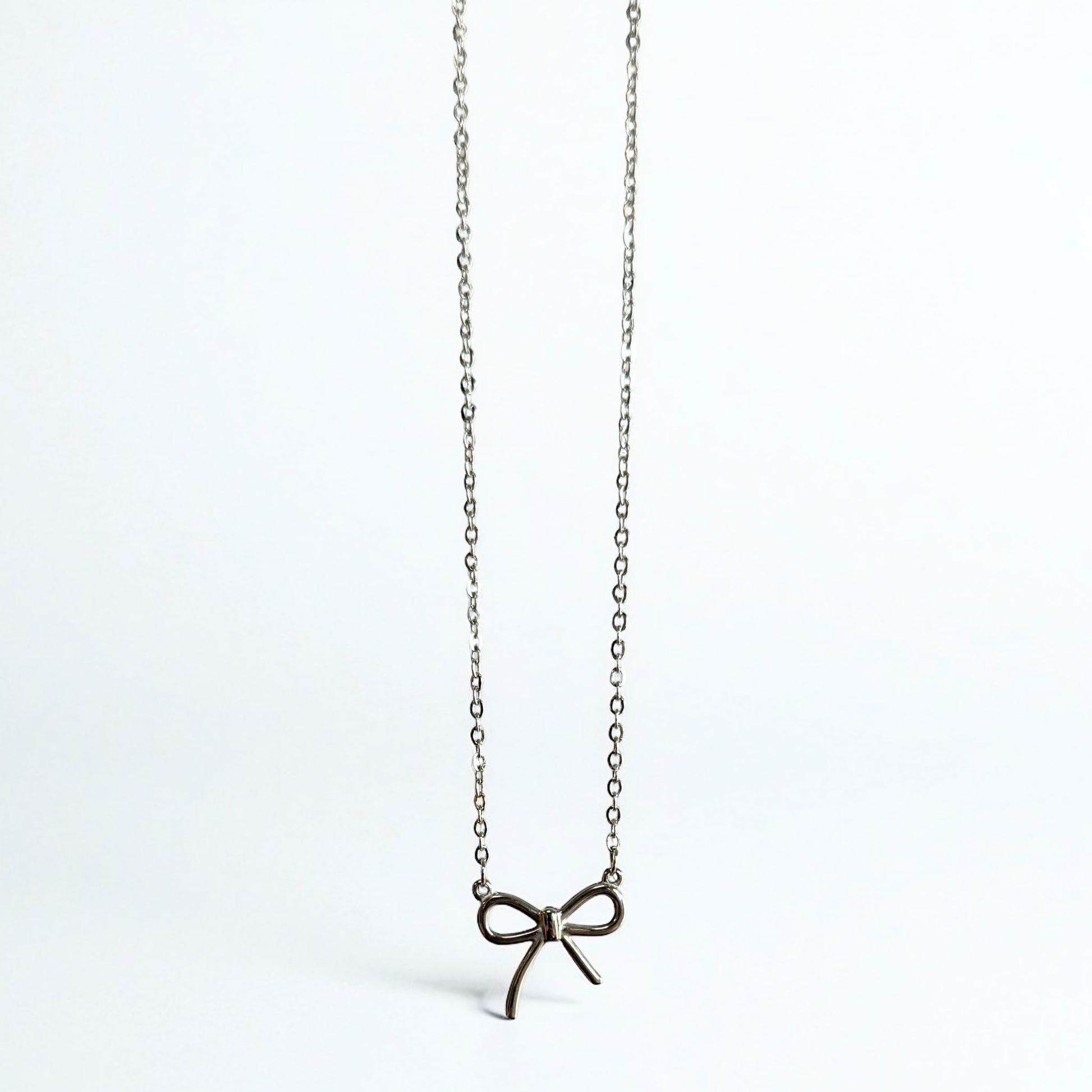 小さなリボンをかたどった、上品で愛らしいデザインのネックレス。