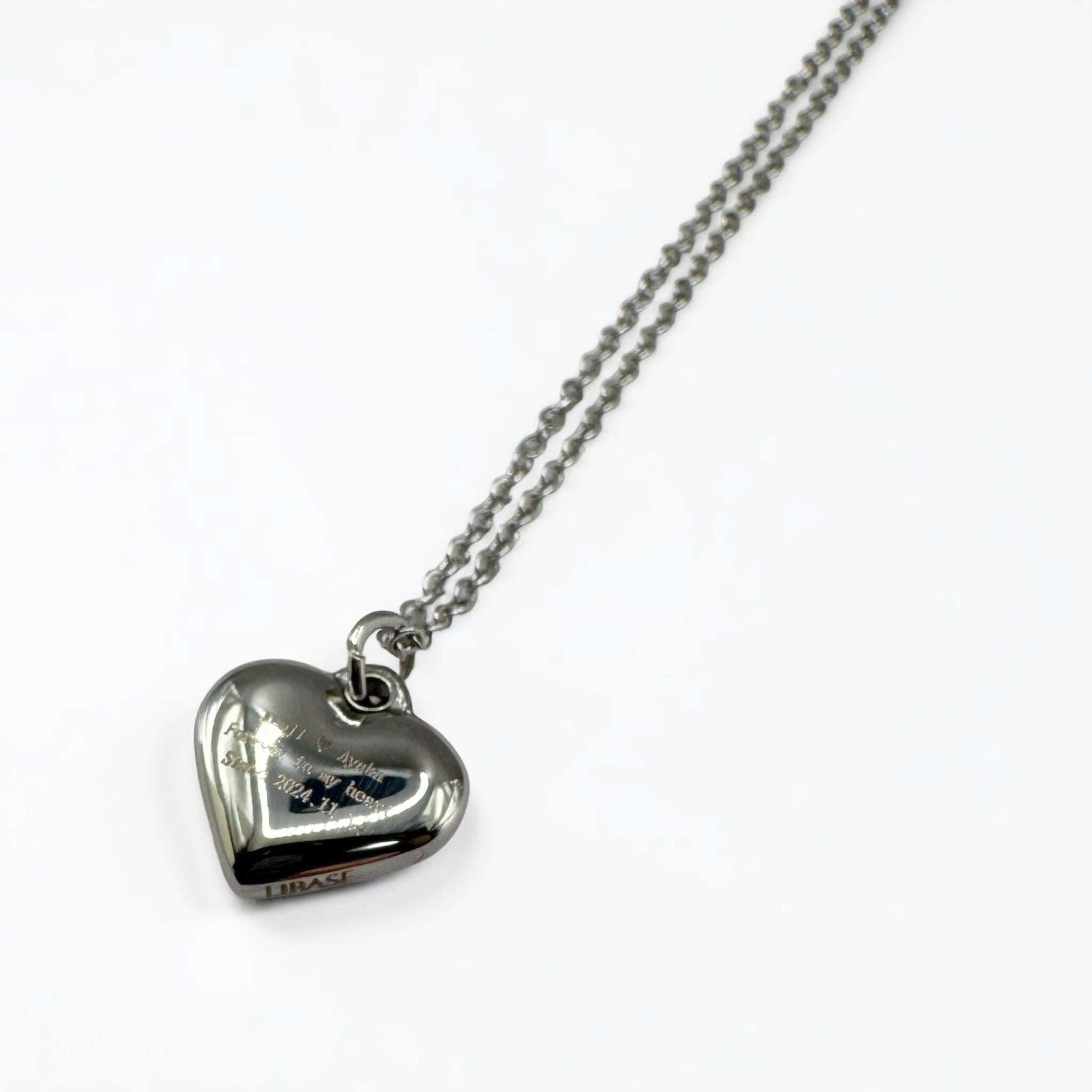 自由にメッセージを刻める、心ときめくハートネックレス。