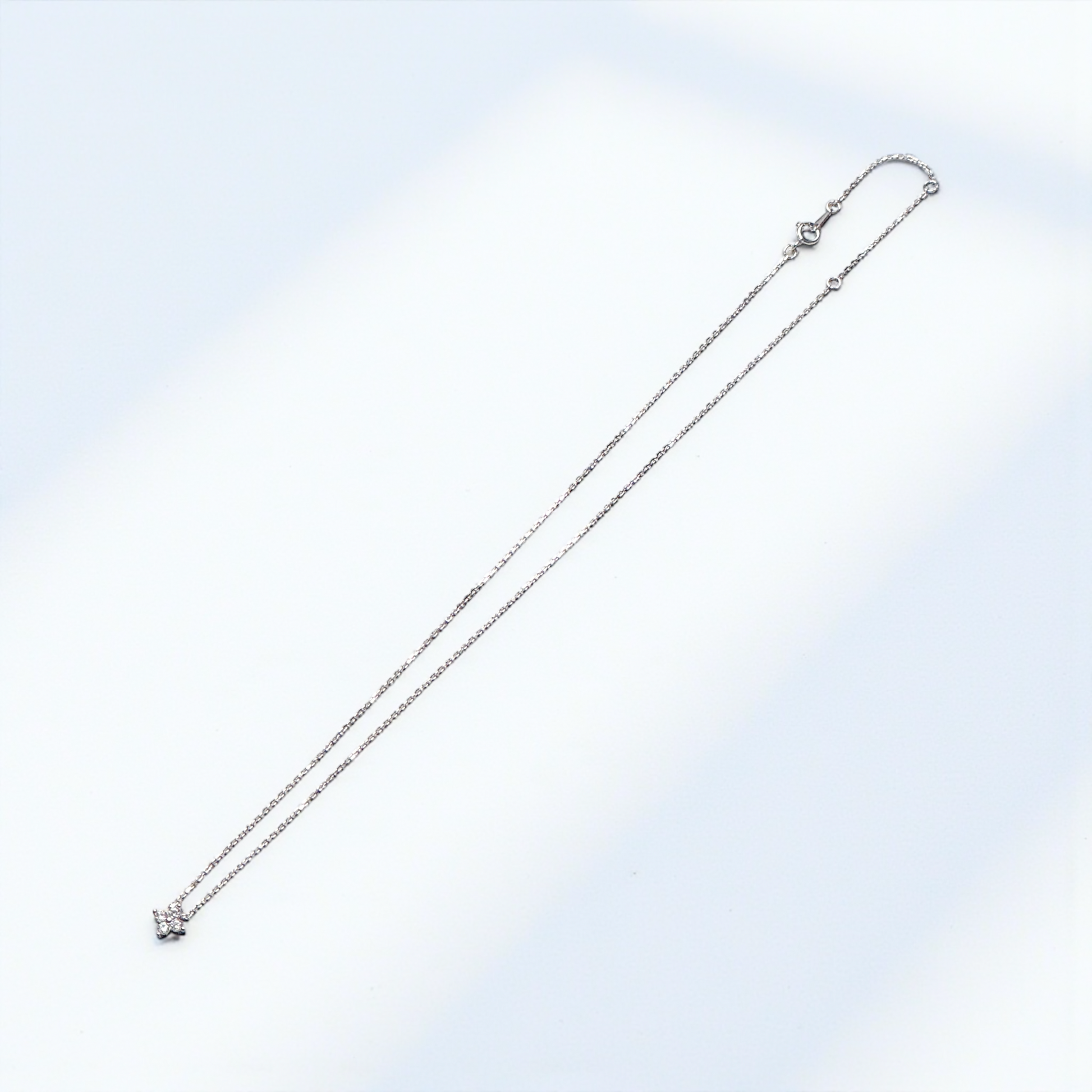 繊細なジルコニアが贅沢にあしらわれたトップは、動くたびにキラキラと光を反射し、首元を上品に彩ります。