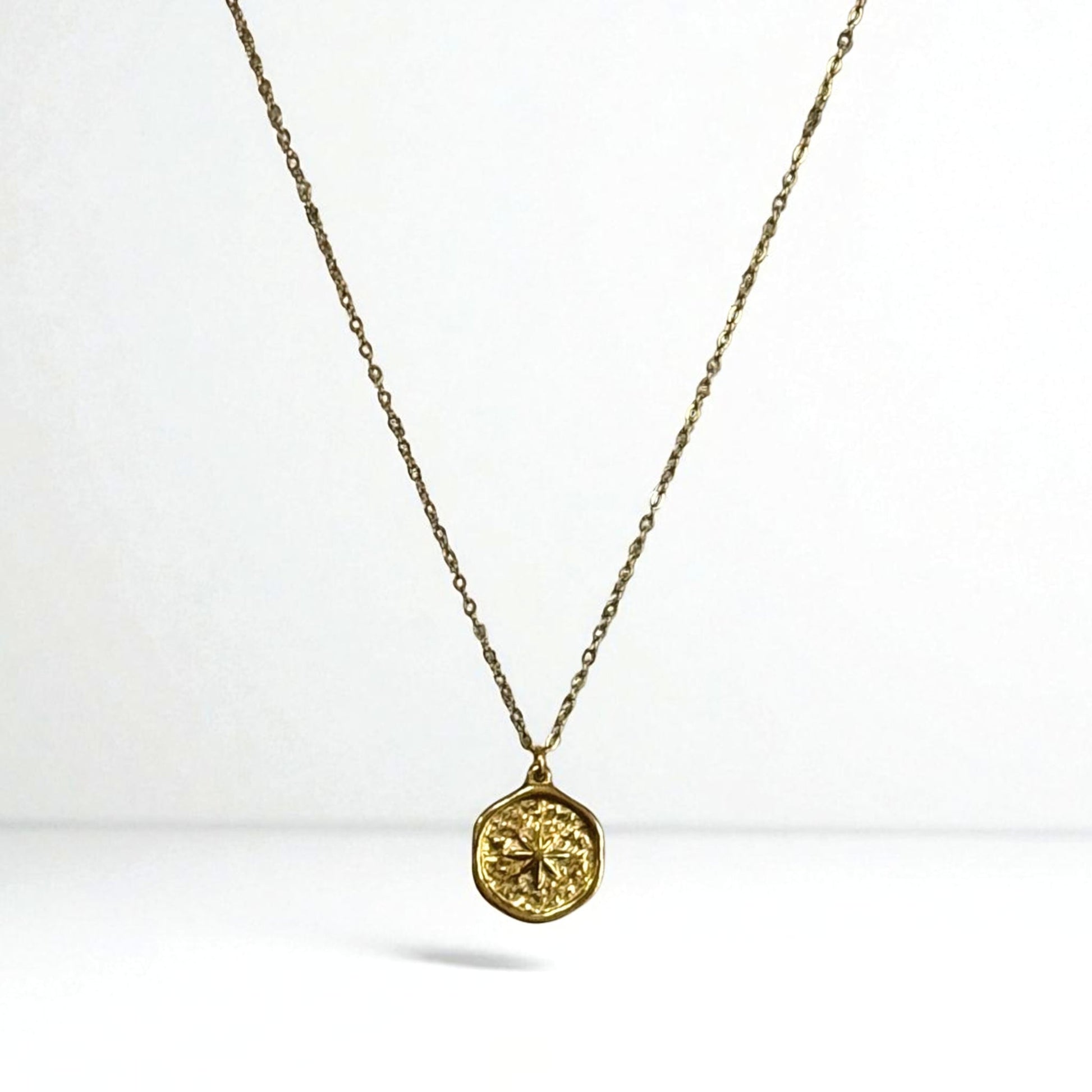 まるで「内なる輝き」を映し出すかのような、印象的なメダリオンネックレスです。