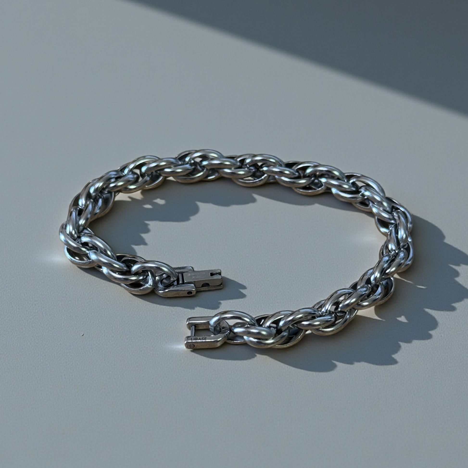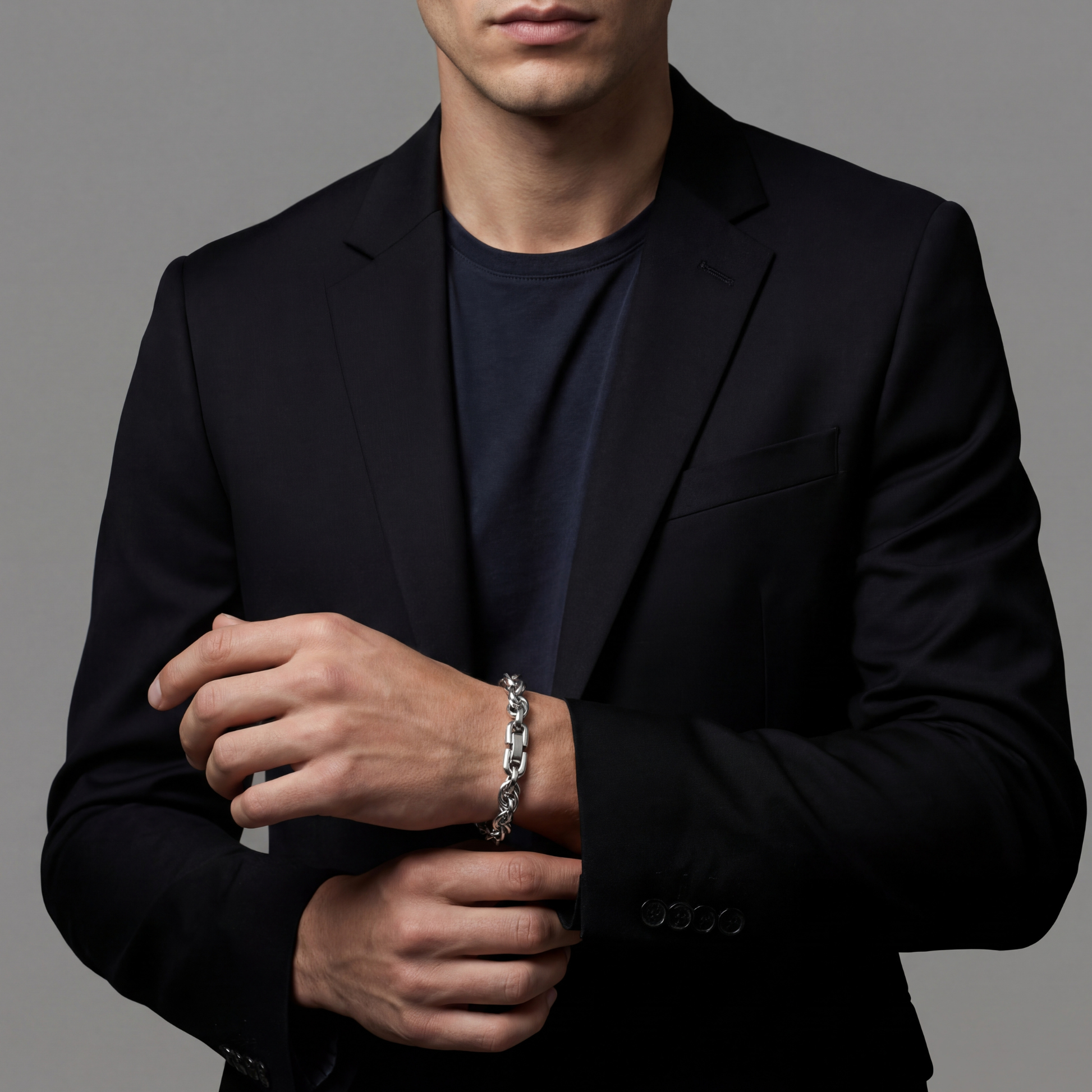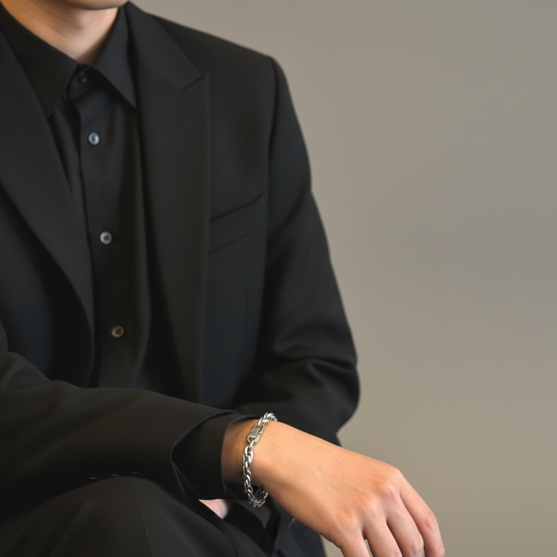 力強さと洗練を兼ね備えた、男心をくすぐるチェーンブレスレット。