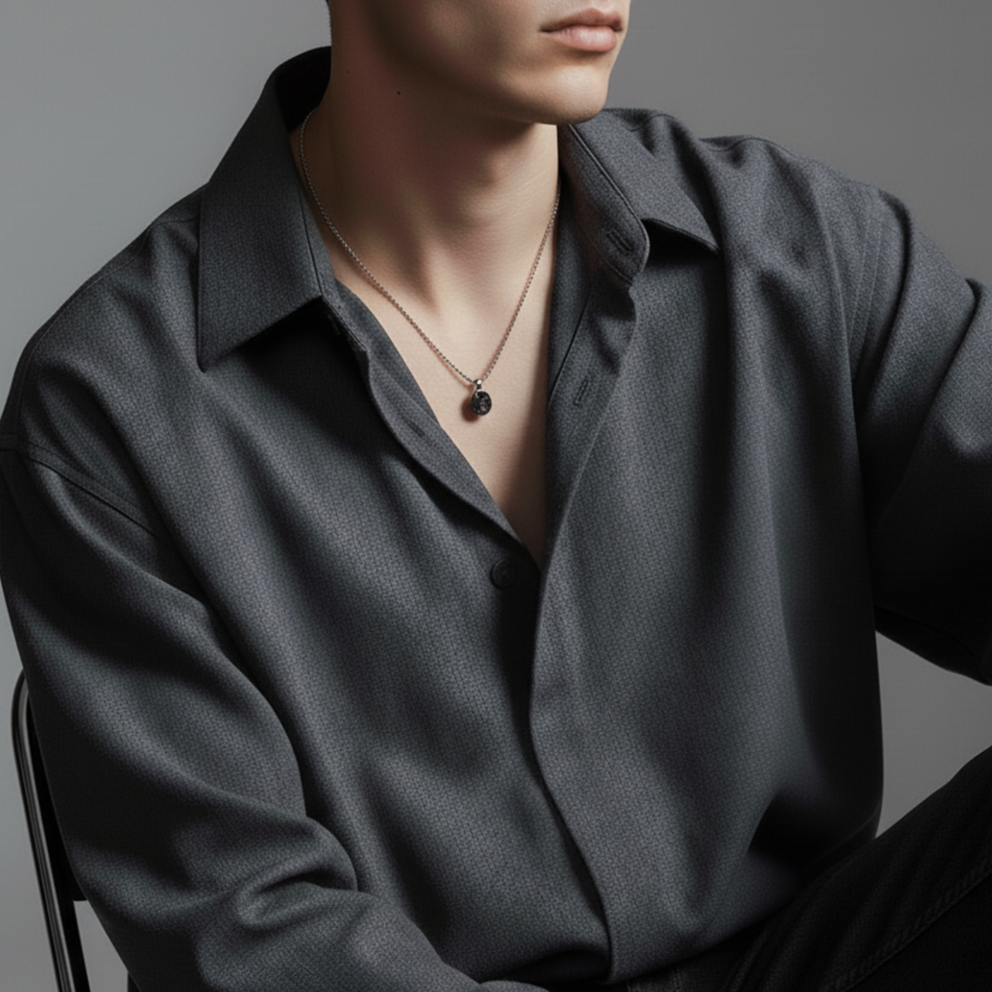 槌目加工が施されたペンダントトップが、クラシックな雰囲気と無骨な美しさを演出します。